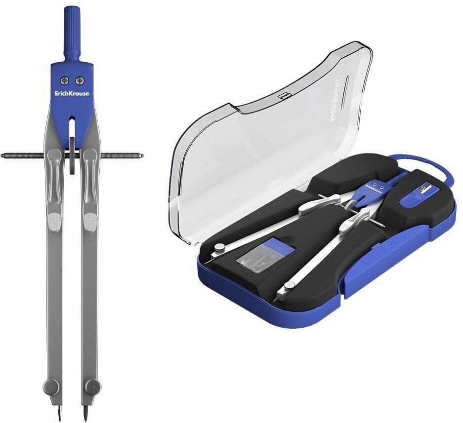 ErichKrause Готовальня University 17 см 3 предмета (46135), синий/серый циркуль