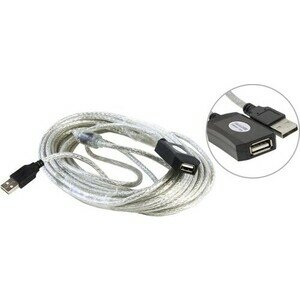 Удлинитель Aopen USB-USB (ACU823), прозрачный, 10 м