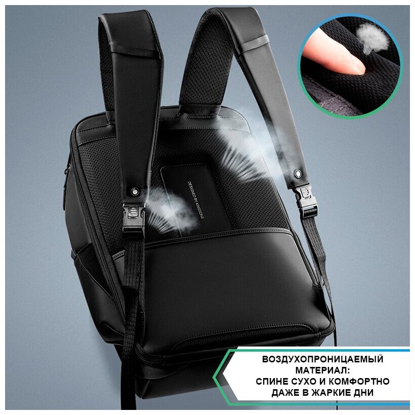 Рюкзак мужской городской дорожный большой 35л для ноутбука 15.6 Kingsons KS3140W 15" Черный водонепроницаемый с USB для взрослых и подростков