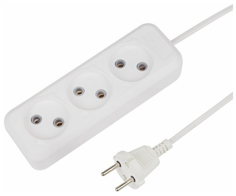 Купить Удлинитель REXANT 3 гнезда, 3 м, 2х0.75 мм², б/з, белый (Сделано в России)