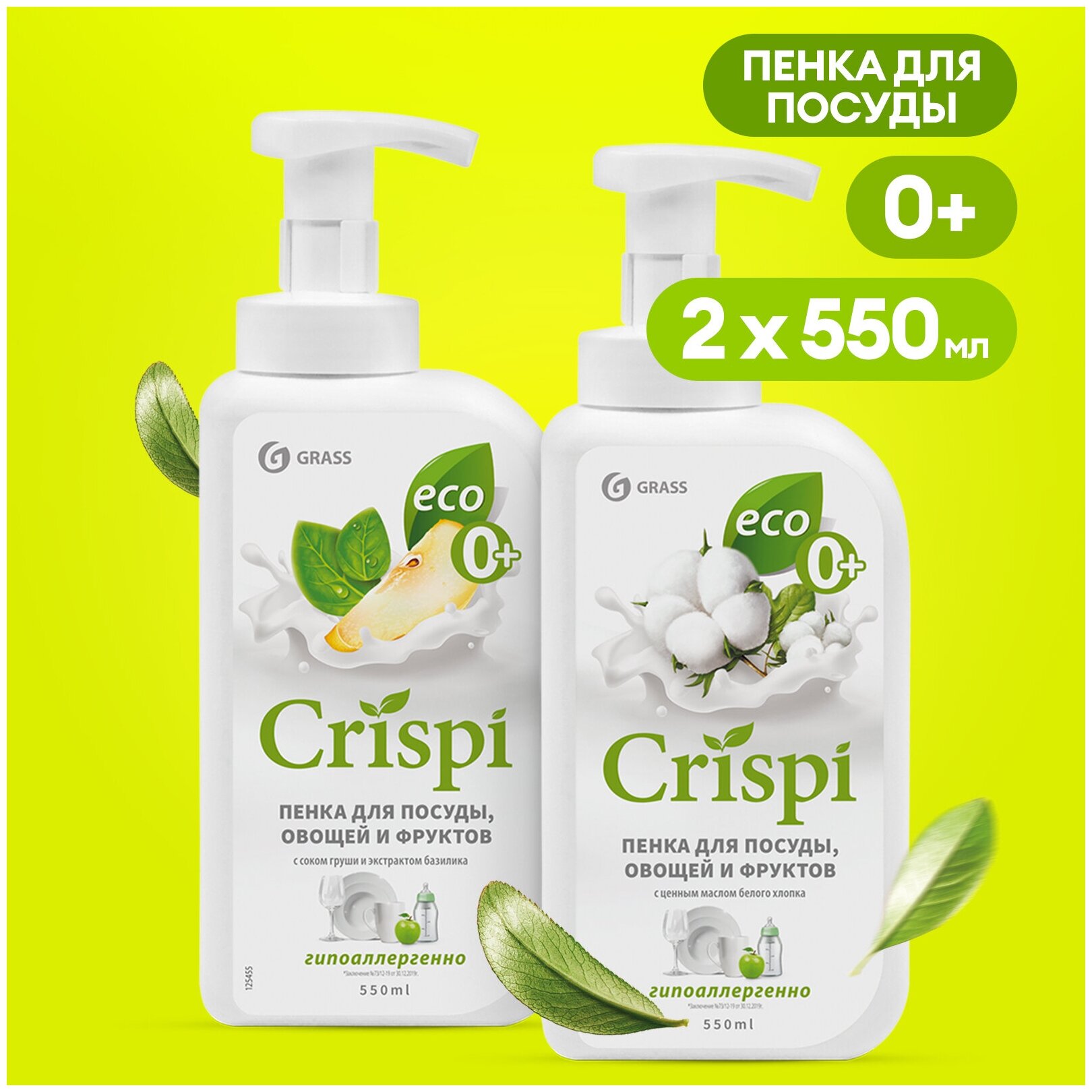 Купить Средство для мытья посуды фруктов и овощей Grass CRISPI пенка 550 мл набор (2шт)