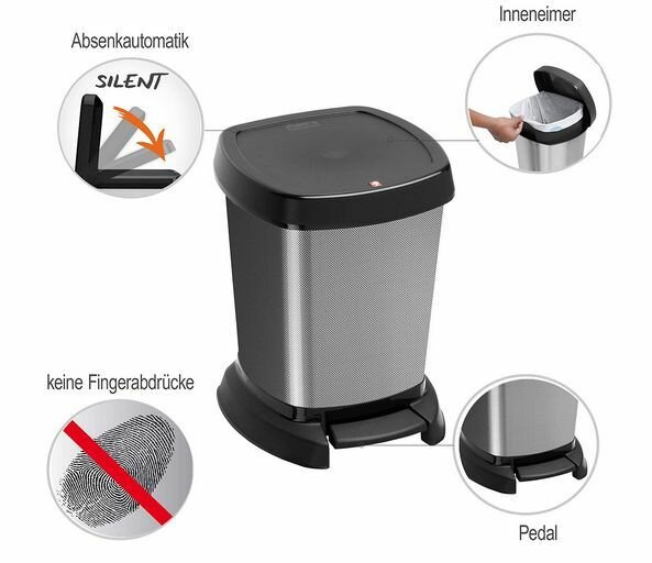 Контейнер для мусора с педалью Rotho PASO 6л серебро / 1116510264