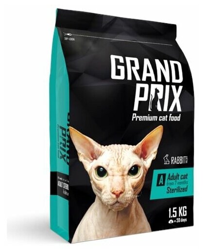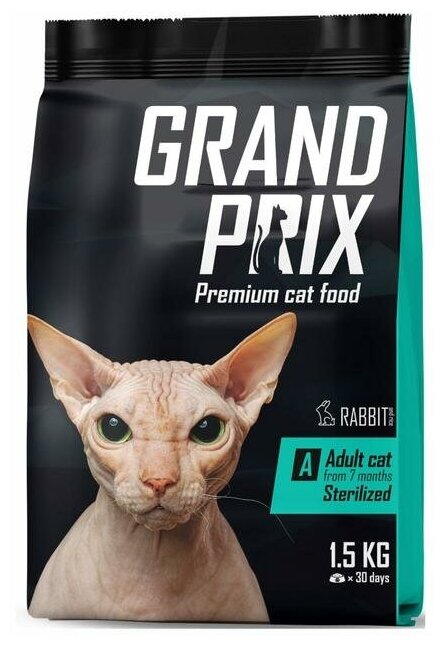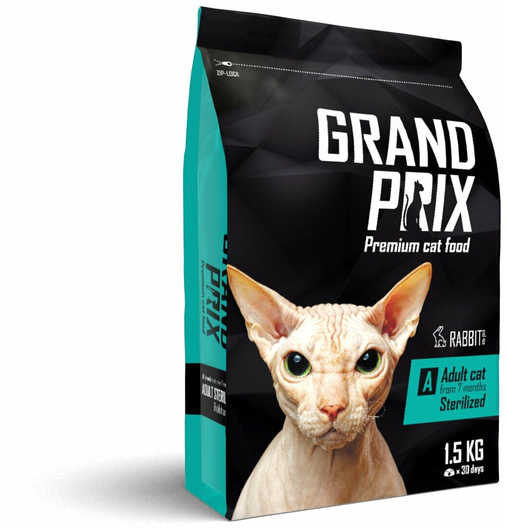 GRAND PRIX ADULT CAT STERILISED для взрослых кастрированных котов и стерилизованных кошек с кроликом (1,5 кг)