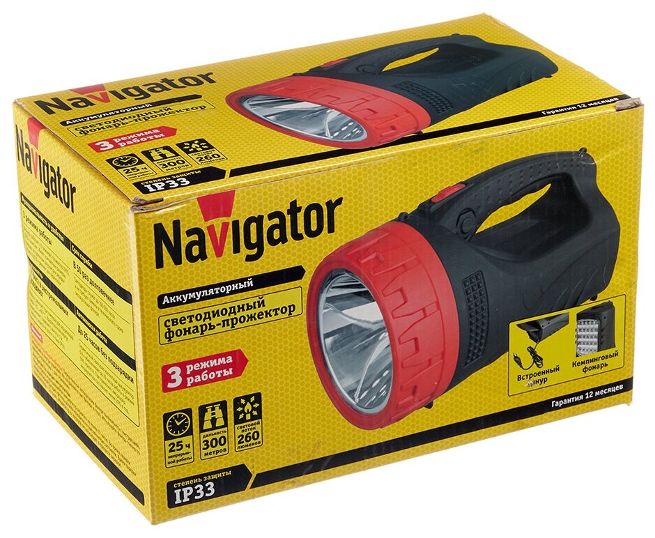 Фонарь ручной Navigator светодиодный 25 LED 5 Вт аккумуляторный SLA 6000 мАч пластик интересное: