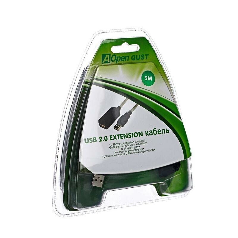 Кабель интерфейсный USB 2.0 Aopen/Qust ACU823-5M удлинительный активный A(M)/A(F), 5m