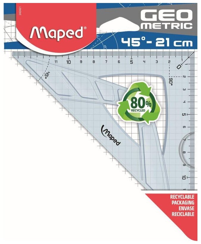 Треугольник Maped GEOMETRIC, гипотенуза 21 см, угол 45, прозрачный 242421, 1719368 интересное: