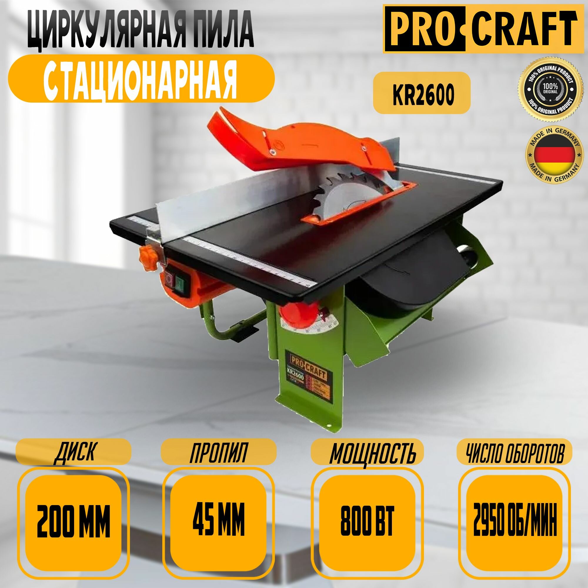 Стационарная циркулярная пила Procraft KR2600/200, 800Вт, диск 200мм