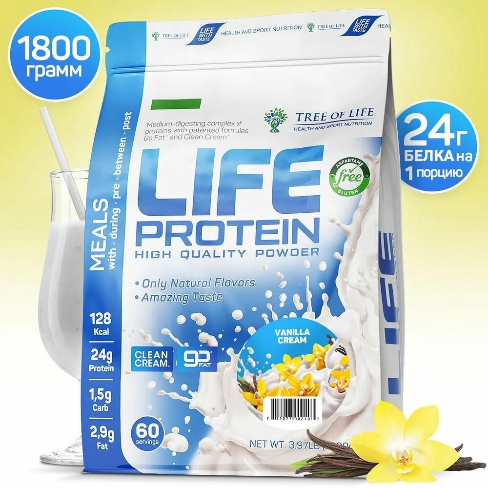 LIFE Protein 1800 gr, 60 порции(й), ваниль интересное: