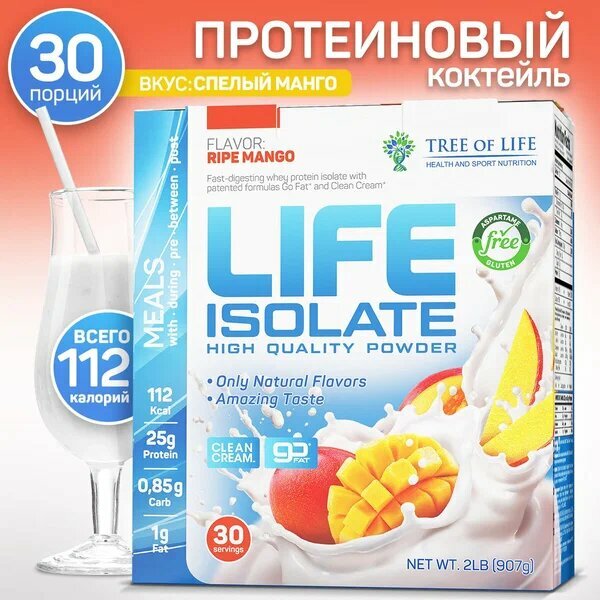 Купить Изолят сывороточного белка Life Isolate 2lb (907 гр) со вкусом Спелый Манго 30 порций