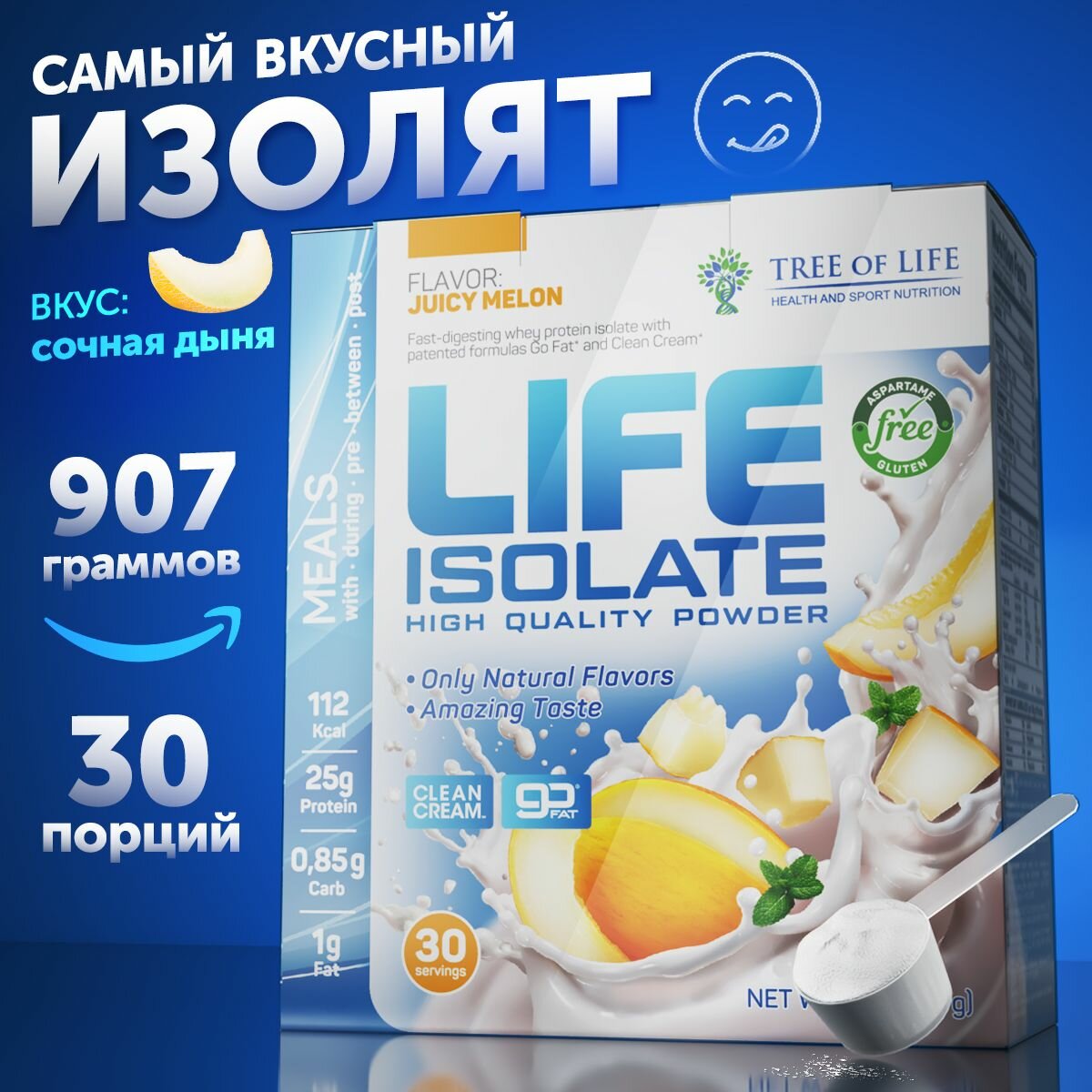 Купить Изолят сывороточного белка Life Isolate 2lb (907 гр) со вкусом Сочная Дыня 30 порций