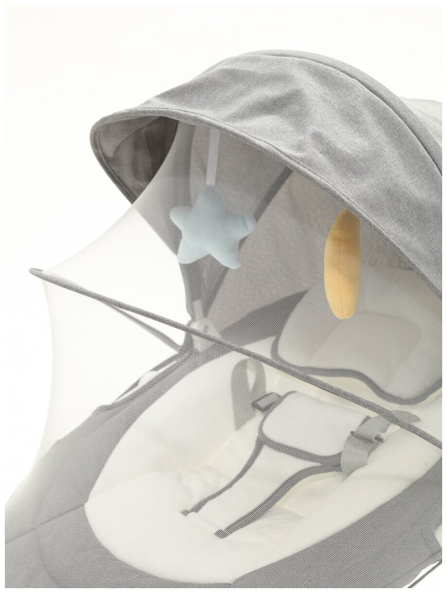 | Комплектация | Пульт дистанционного управления + батарейка (CR2025), Подвесные мягкие игрушки, Кабель для сети , Подушка под голову малыша , Ремни безопасности, Вкладыш для новорожденного, Москитная сетка, столик, силиконовая ложка. |