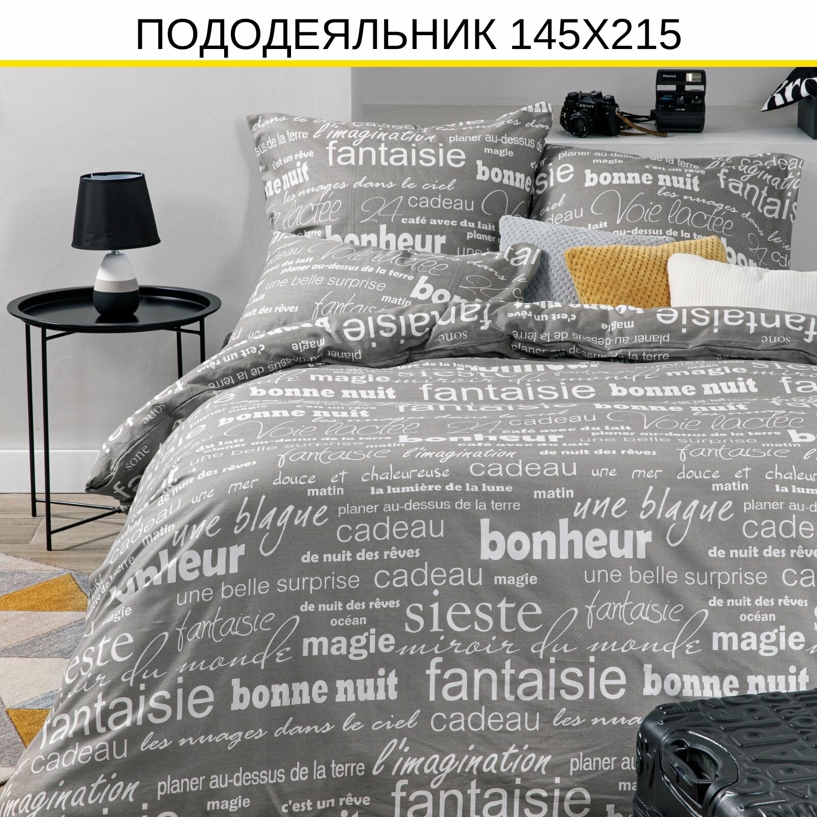 Постельное белье 2-сп. с европростыней Поплин (50х70) Ночь Нежна Леттерс 20087-1+71141-9