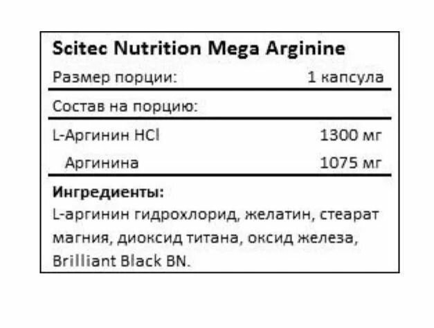 Аминоскилота Аргенин Scitec Nutrition Mega Arginine капсулы по 1,48 г, 120 шт