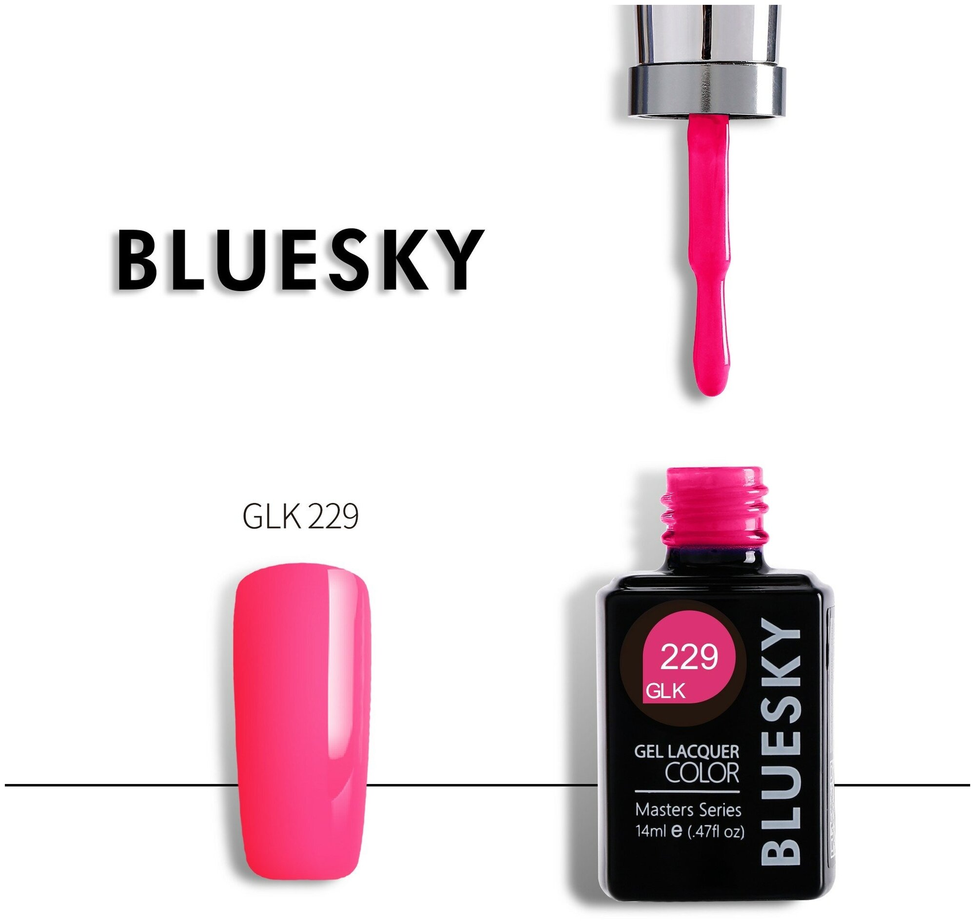BLUESKY Masters Series Гель-лак 14мл GLK229 Neon (неоновый холодный розовый, без блесток и перламутра, плотный.)