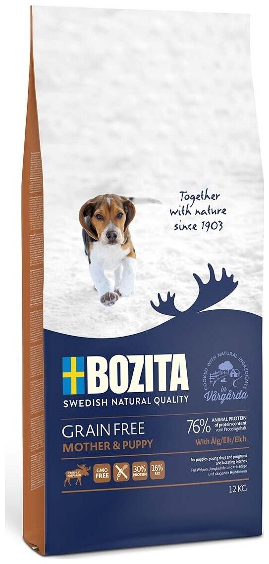 Купить Bozita super premium Bozita GRAIN FREE Mother & Puppy, Elk 30/16 сухой корм беззерновой для щенков и юниоров всех пород