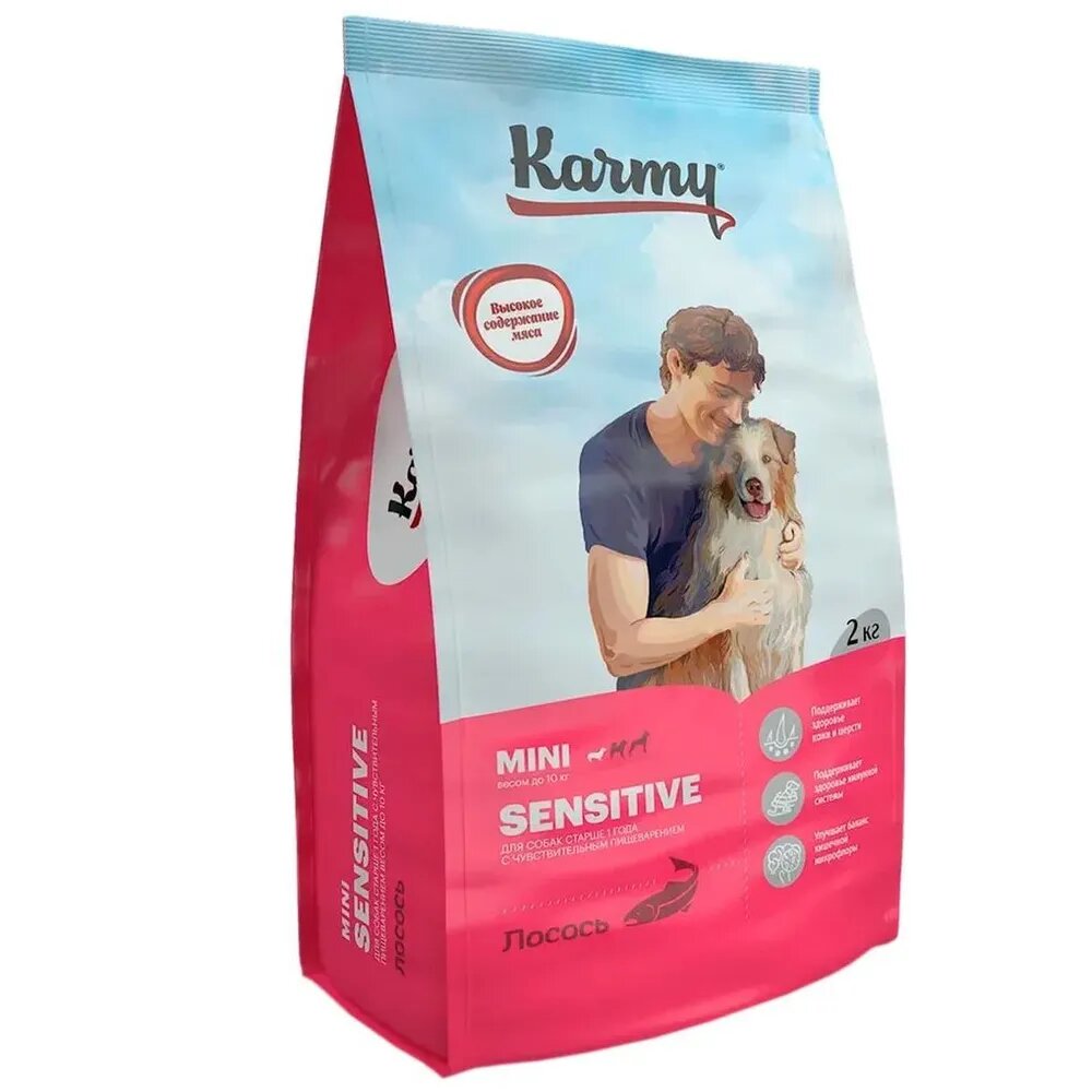 Корм для собак сухой Карми Sensitive Mini для взрослых животных мелких пород с чувствительным пищеварением, гранулы с лососем 2кг / сбалансированное