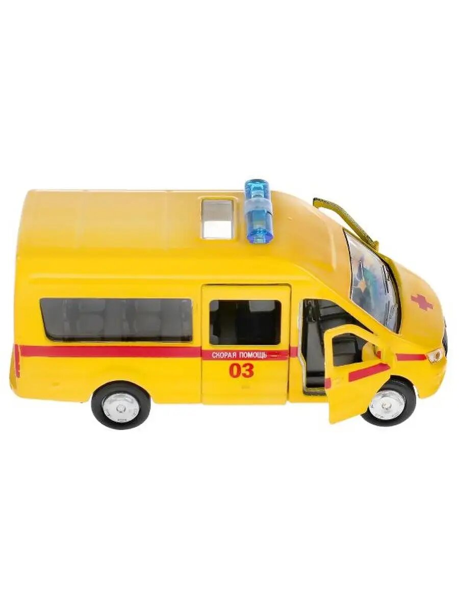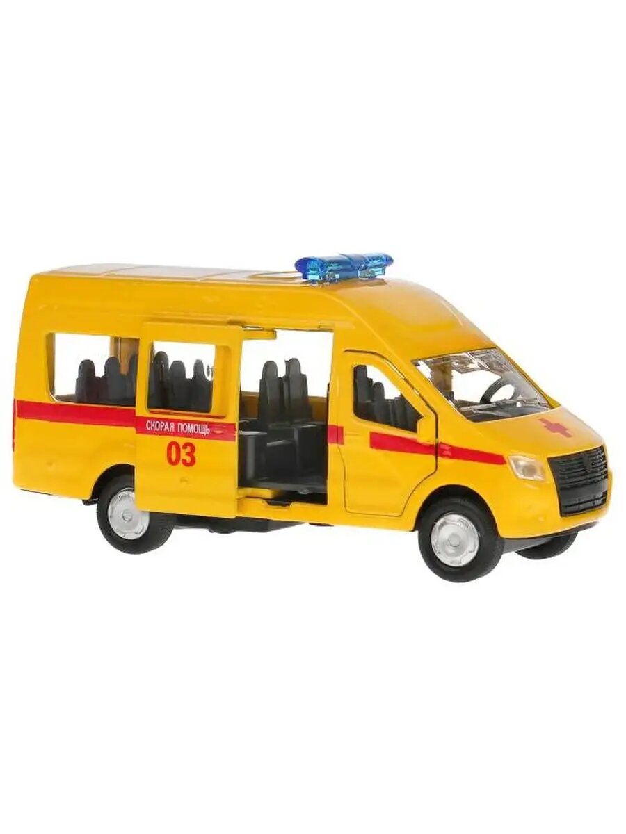 Автомобиль металлический инерционный газель NEXT скорая 12 см двери открываются технопарк SB-18-19-A-Y-WB