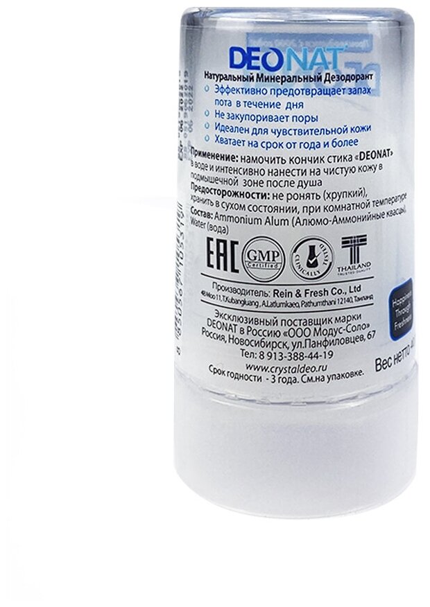 | Отзыв: | Пот здорового человека не имеет запаха. Потоотделение естественный процесс. Поэтому, вместо того чтобы закупоривать поры дезодорантами лучших заняться своим здоровьем. DeoNat нравится за его натуральный состав. Использую на ночь после душа. Не оставляет следов на одежде. Хрупкий, если уронить то кристалл разобьётся. |