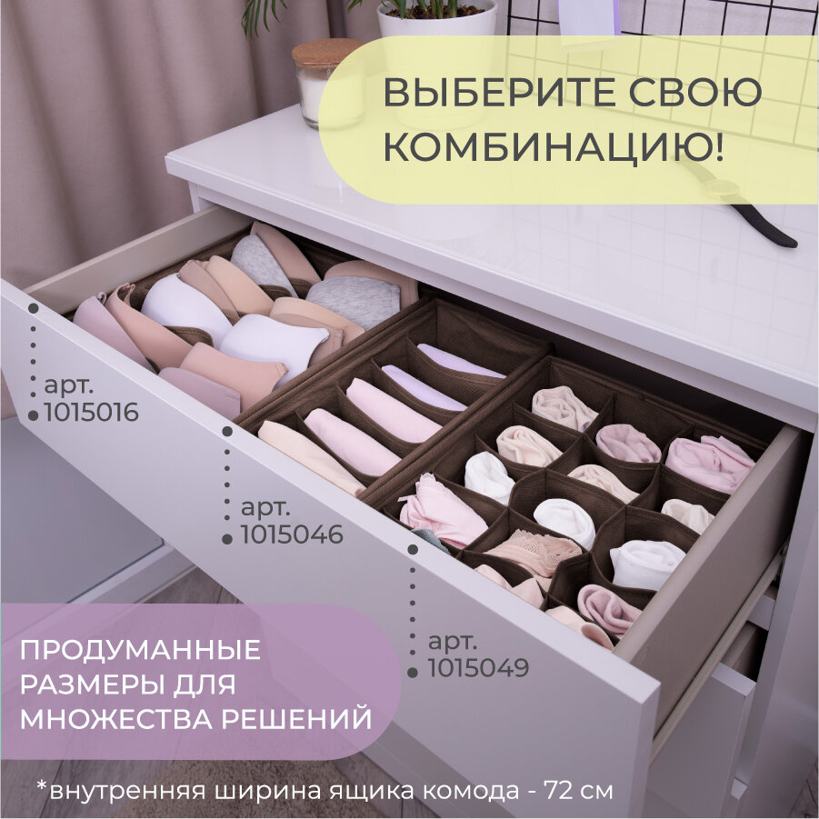 | Отзыв: | Всё на местах - всё трусики и носочки. Очень мягкий органайзер - только для использования в ящике с твёрдыми стенками-ограничителями и твердым дном |