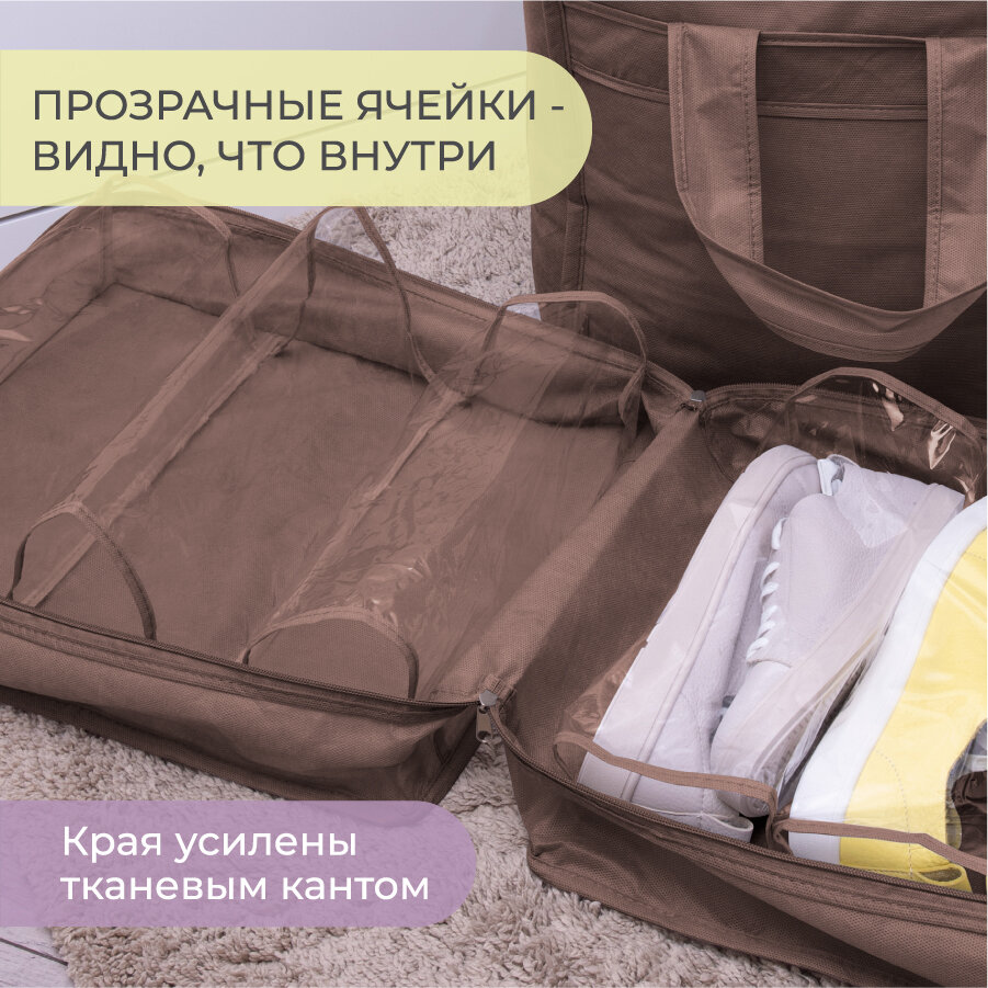 Чемодан для обуви 35х40х20 см, 6 ячеек, Милан