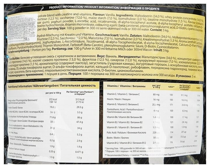 СохранитьГейнер vplab Mass Builder (5 кг), ваниль интересное: