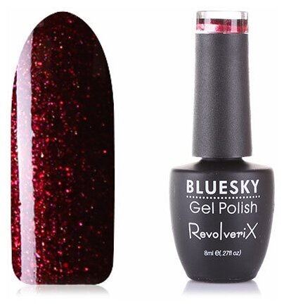 BlueSky, Гель-лак "RevolveriX" #027, Арт. 4108 (вишневый, с красными микроблестками, плотный.)