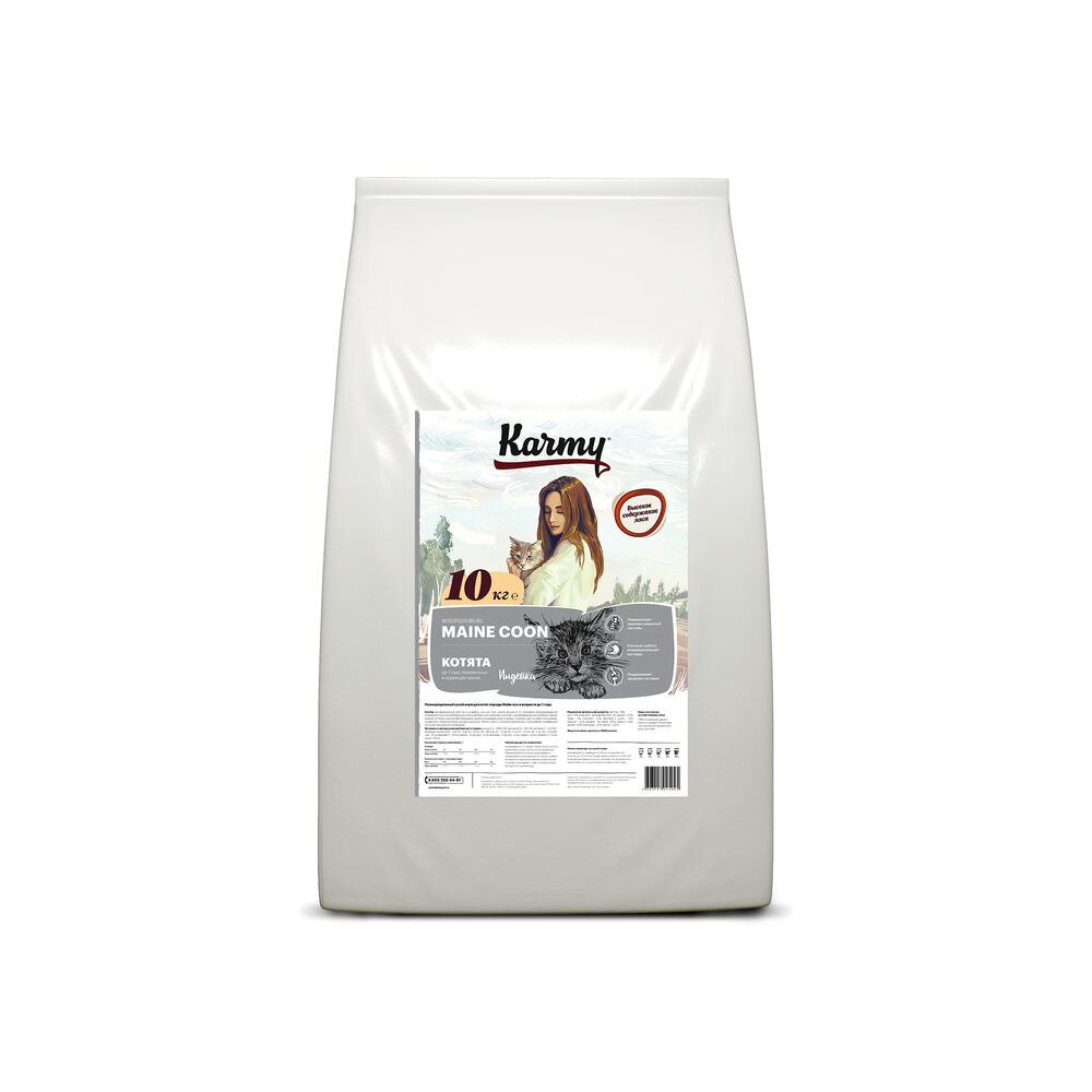Корм Karmy Main Coon Kitten для котят породы мейн-кун, беременных и кормящих кошек, с индейкой, 10 кг