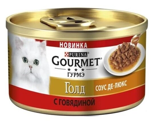 Влажный корм для кошек Gourmet Голд Соус де-люкс, с говядиной 12 шт. х 85 г (кусочки в соусе) интересное:
