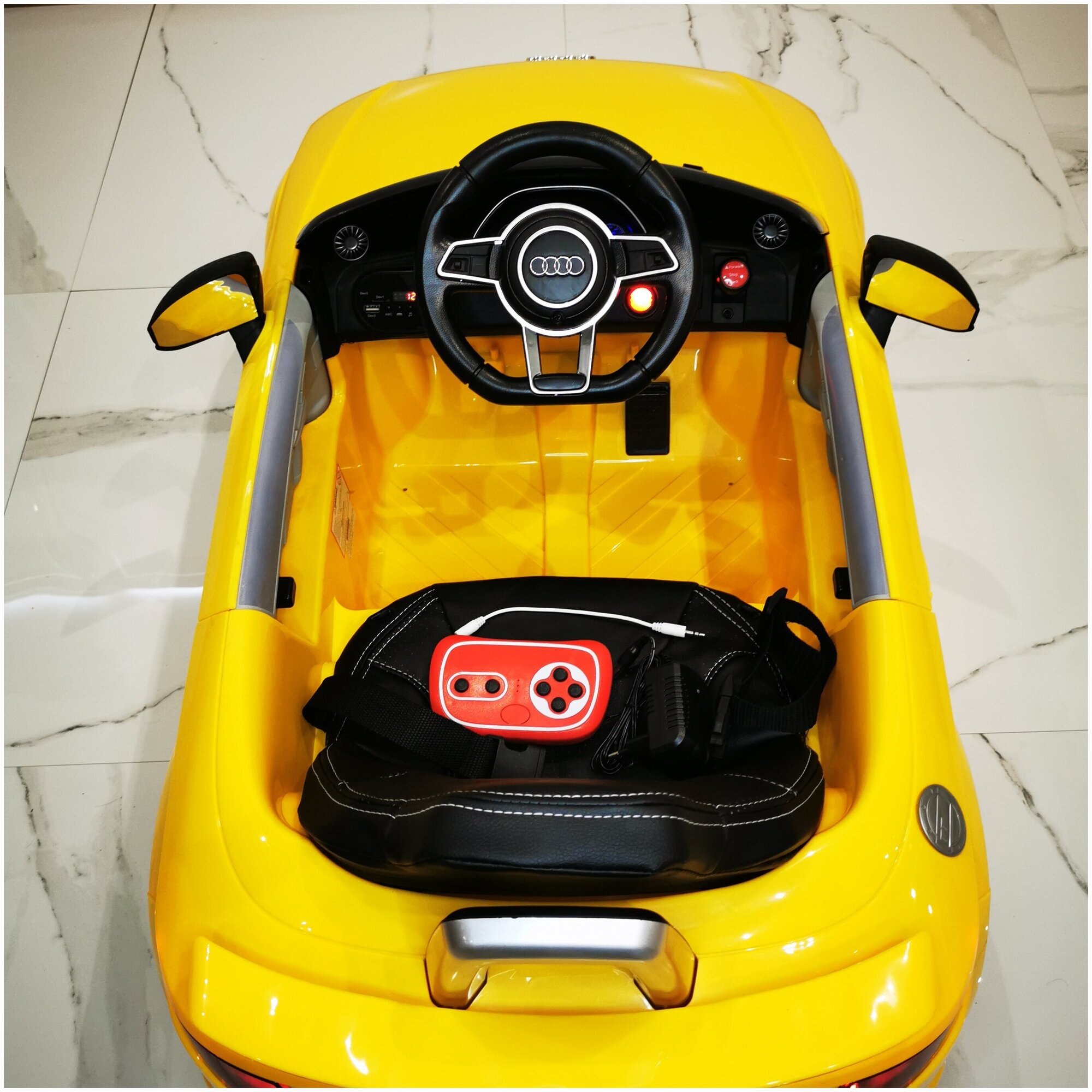| Комплектация | амортизаторы / боковые зеркала заднего вида / зарядное устройство / кабель AUX / клаксон / музыкальные колонки / пульт ДУ / ремни безопасности / ручка/педаль газа |