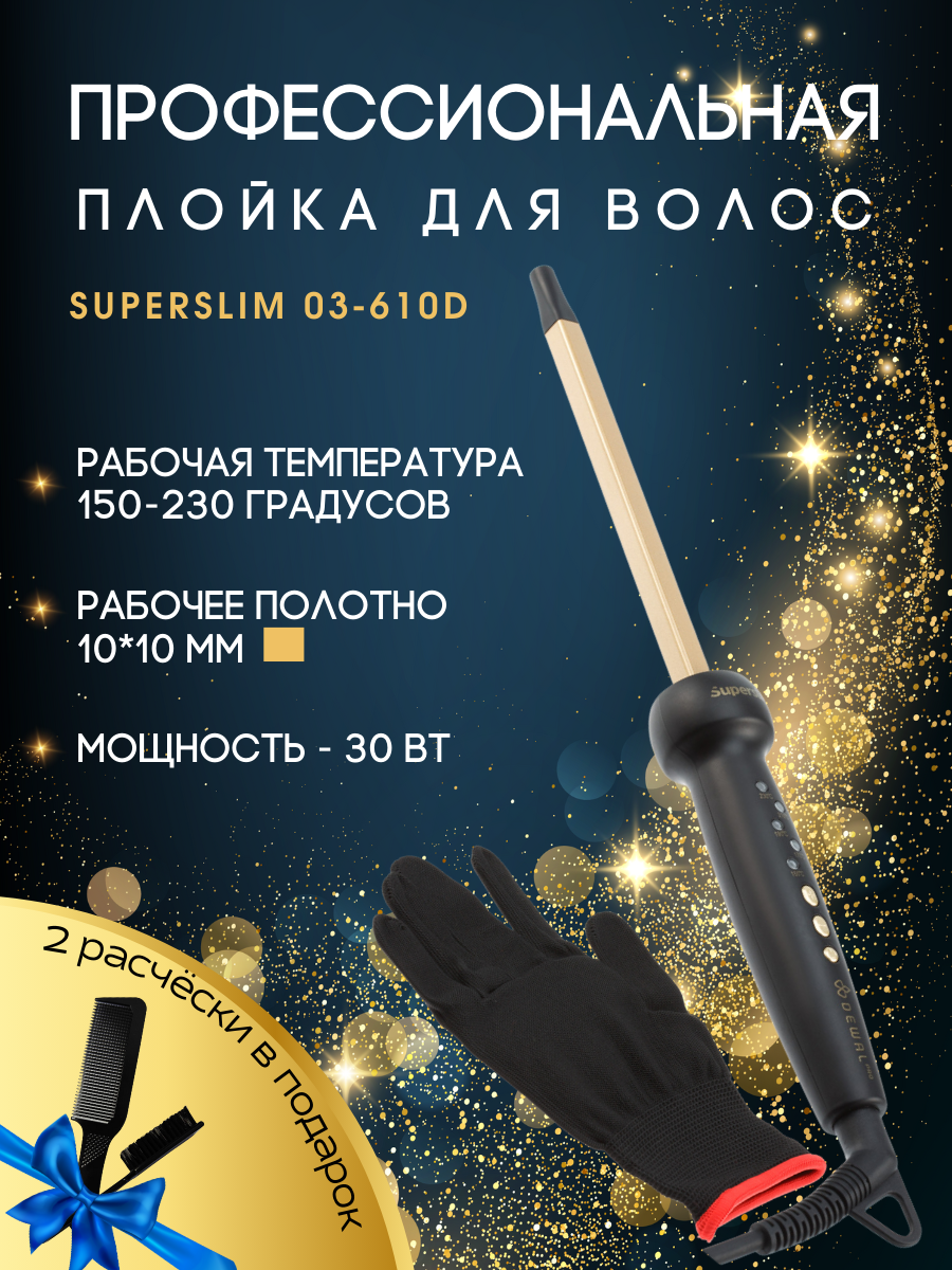 Плойка для волос DEWAL SUPERSLIM, 10х10 мм, 30Вт 03-610D