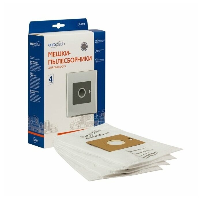 E-15/4 Мешки-пылесборники Euroclean синтетические для пылесоса, 4 шт