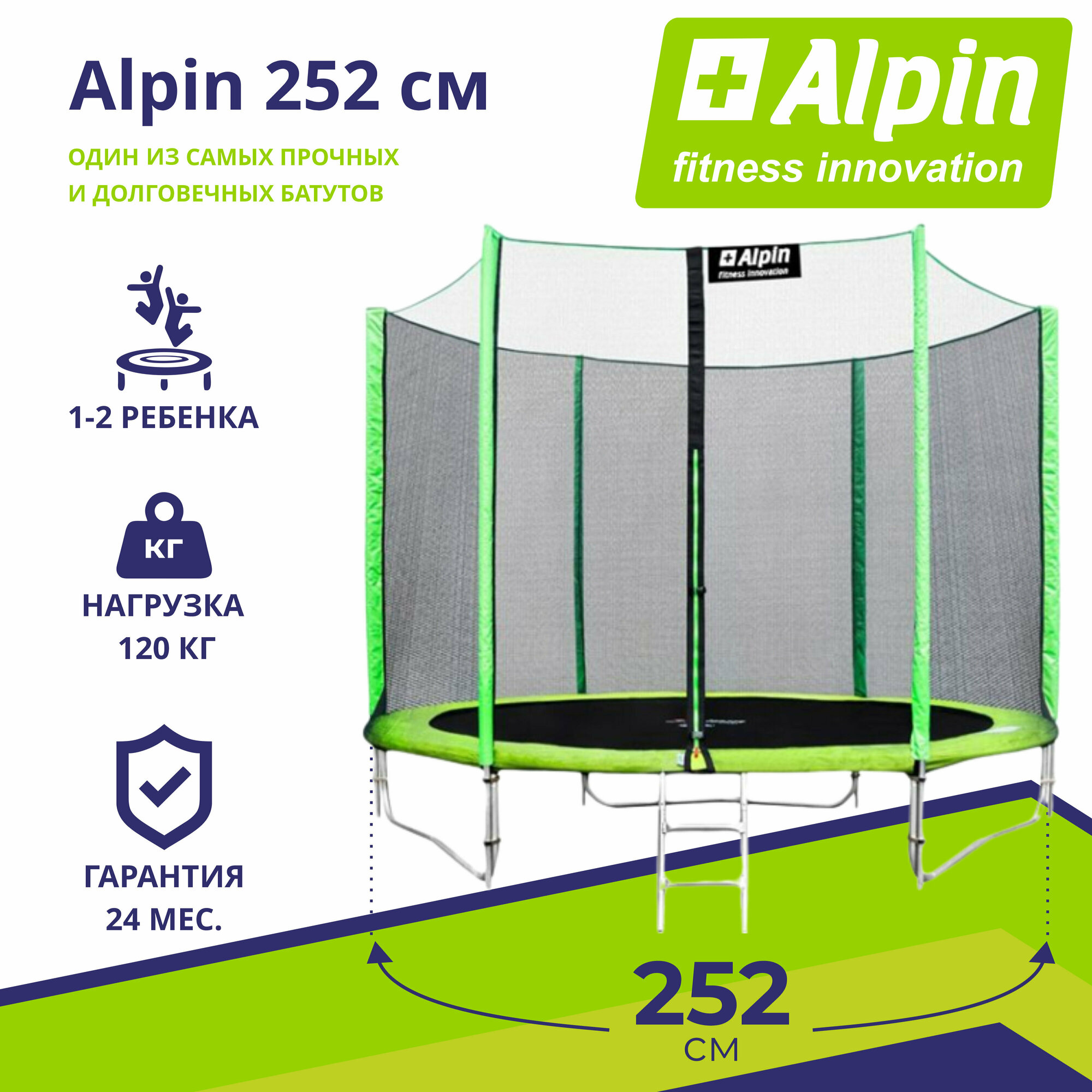 Каркасный детский батут с защитной сеткой Alpin 252см железный большой батут на дачу для взрослых и детей