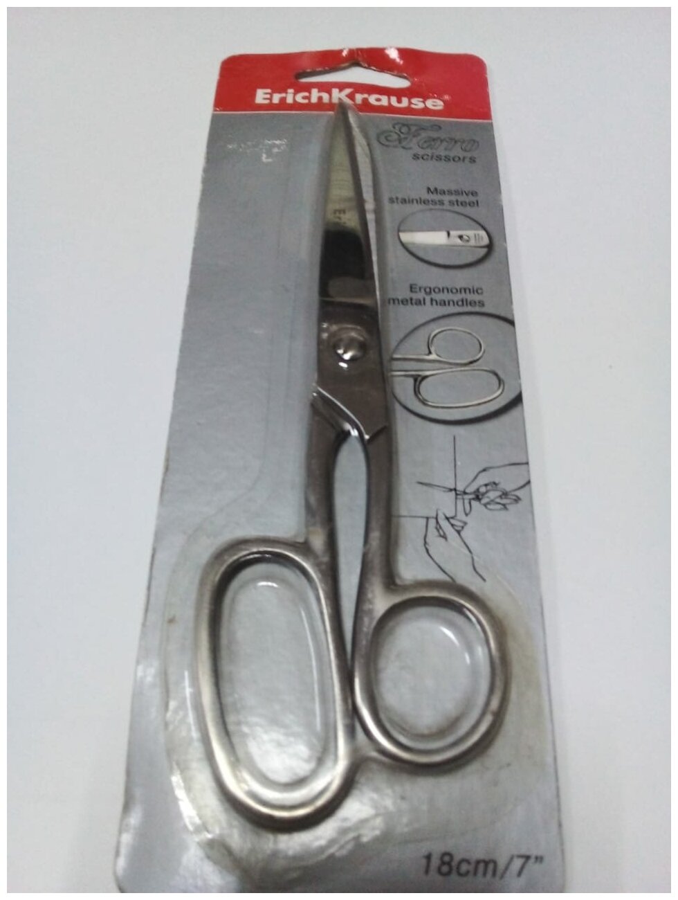 Ножницы, 180 мм, ErichKrause Ferro, цвет хром, блистер, для работ с тканью