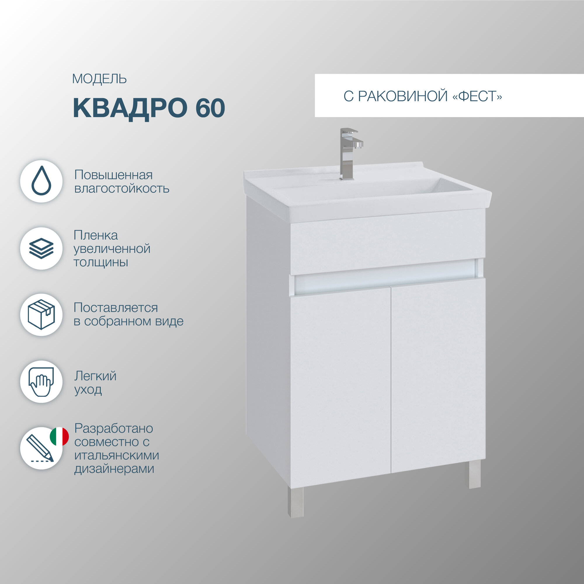 Купить Тумба напольная SanStar Квадро 60 с раковиной Фест 60 (комплект) для ванной комнаты, белая