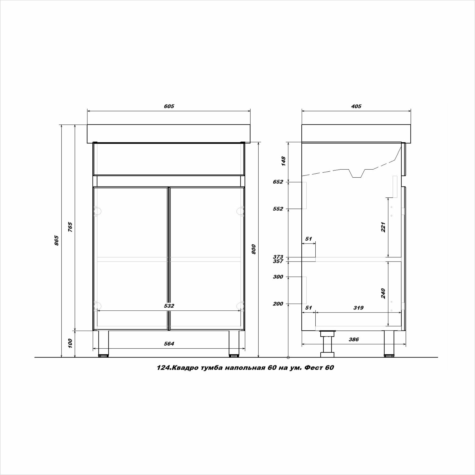 Комплект Sanstar напольная тумба Квадро 60 с раковиной Фест 60 124.1-1.4.1.кфес