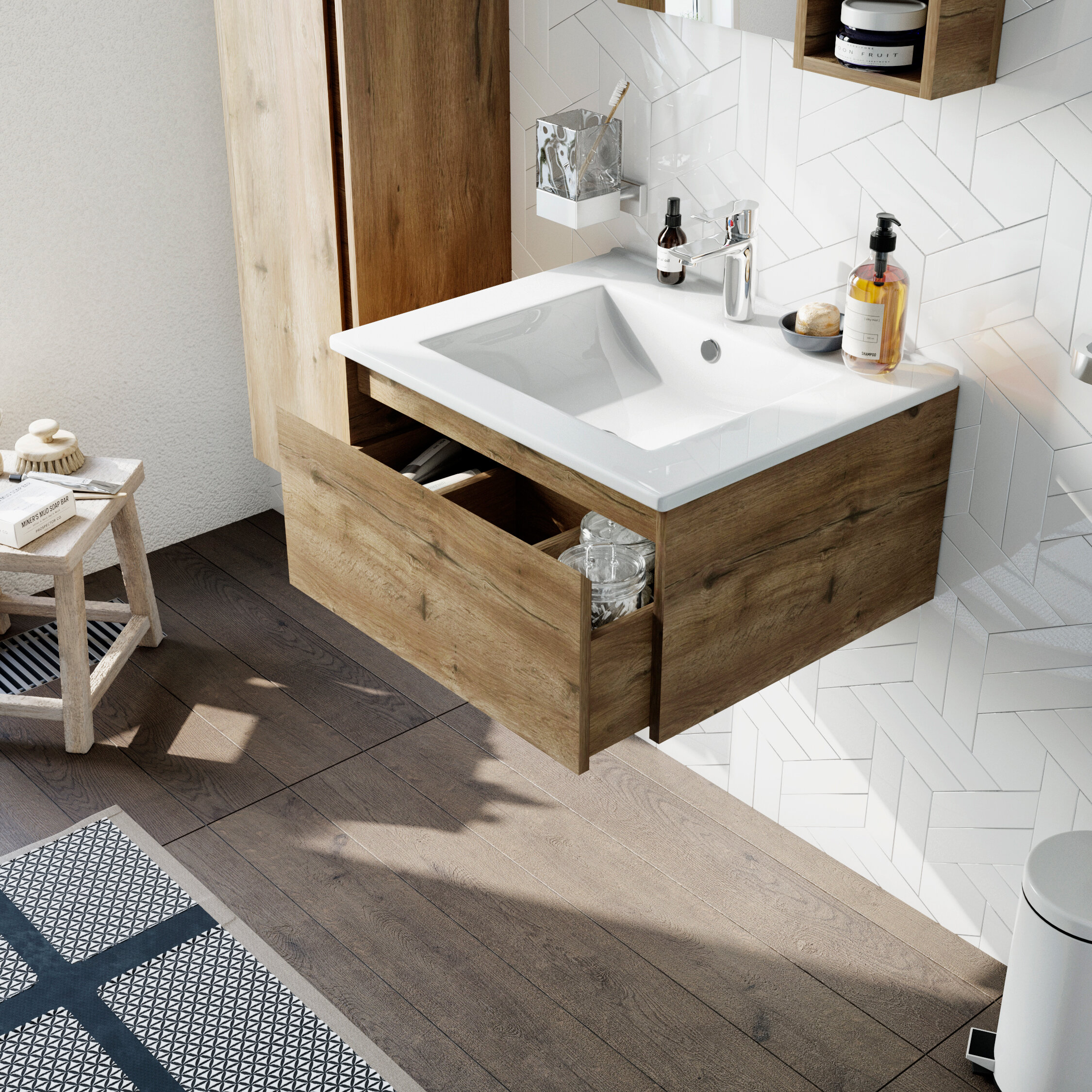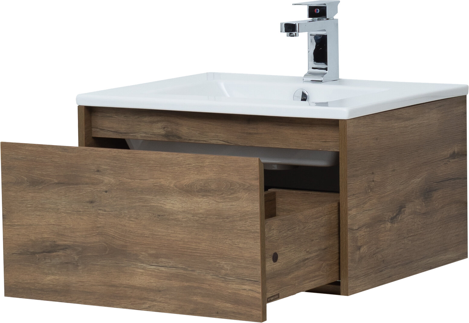 Тумба с раковиной STWORKI Карлстад 60 дуб рустикальный, с белой полкой интересное: