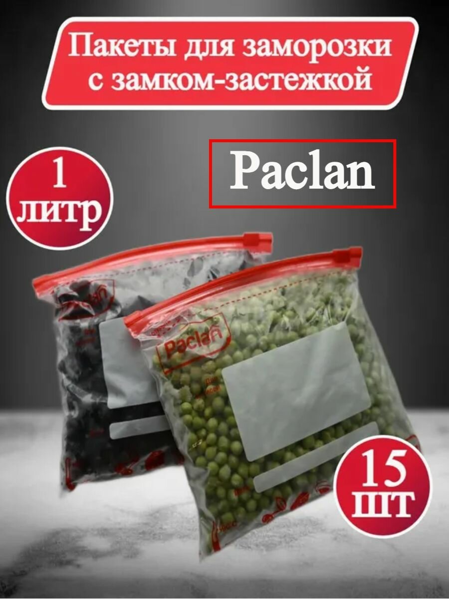 Пакеты фасовочные пищевые для хранения продуктов, с застежкой, 15 шт, 1 л, 22 х 18 см, Paclan