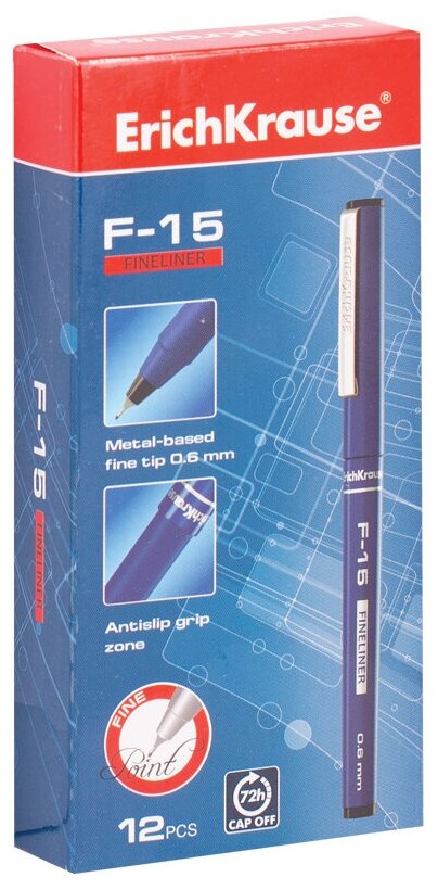 Ручка капиллярная Erich Krause F-15, корпус синий, толщина письма 0,6 мм, черная (37066)