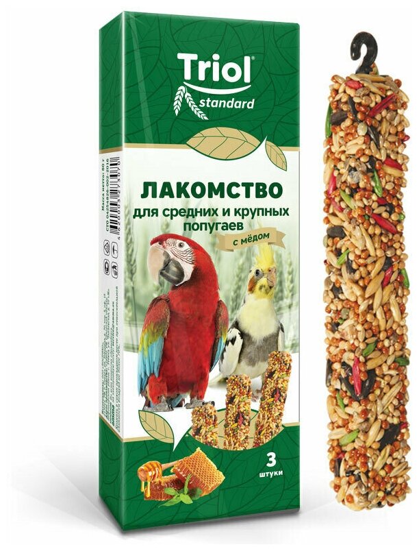 Лакомство Triol Standard для средних и крупных попугаев с мёдом , 80г, (в упаковке 3шт)