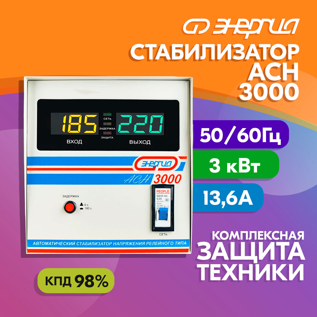 Стабилизатор напряжения Энергия АСН-3000, 3000 ВА, однофазный, для дома 2000 2500 Вт 2 2,5 2.5 КВт