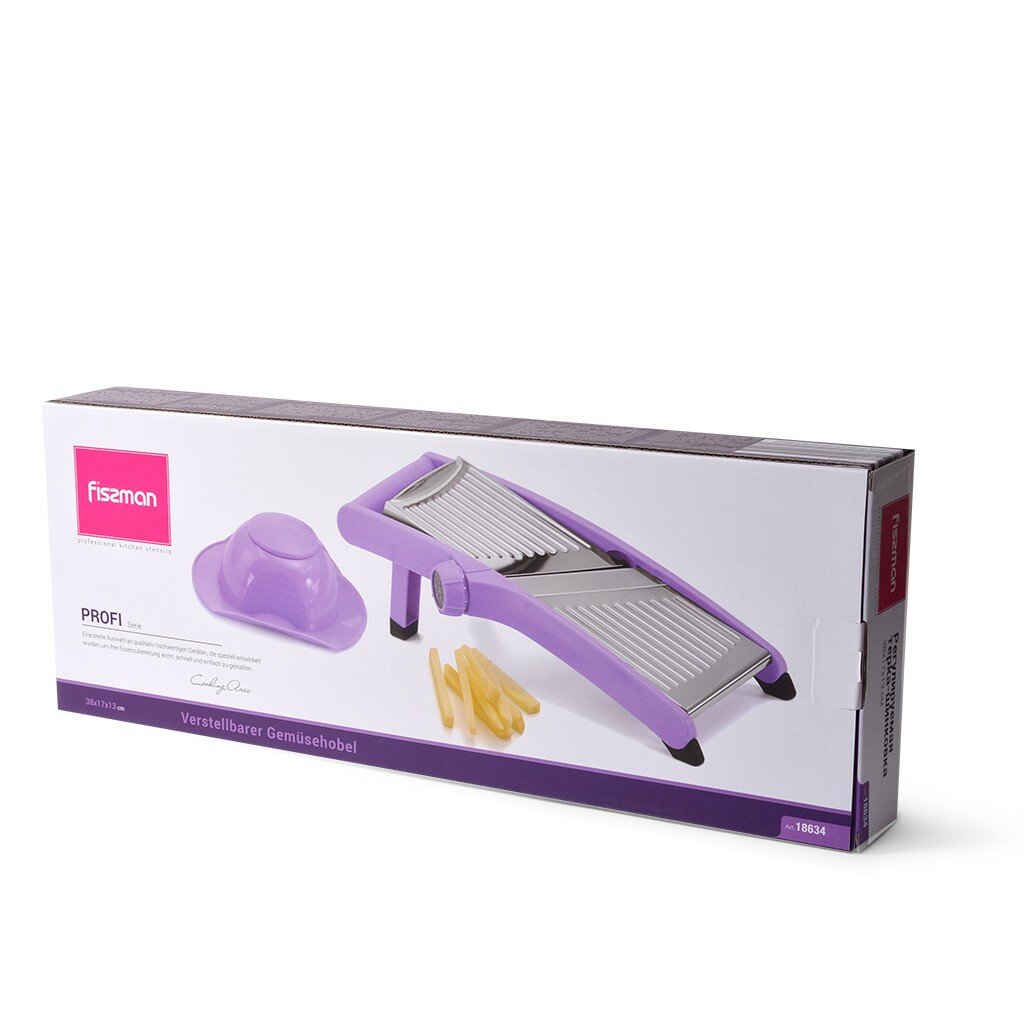 18634 FISSMAN Регулируемая терка-шинковка PROFI 38х17х13 см, цвет лиловый (нерж. сталь в пластиковом корпусе)