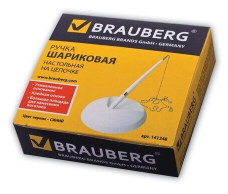 Ручка шариковая настольная BRAUBERG "Стенд-Пен Уайт2", синяя, цепочка, корпус белый, линия письма 0,5 мм, 141348 - 1 шт.