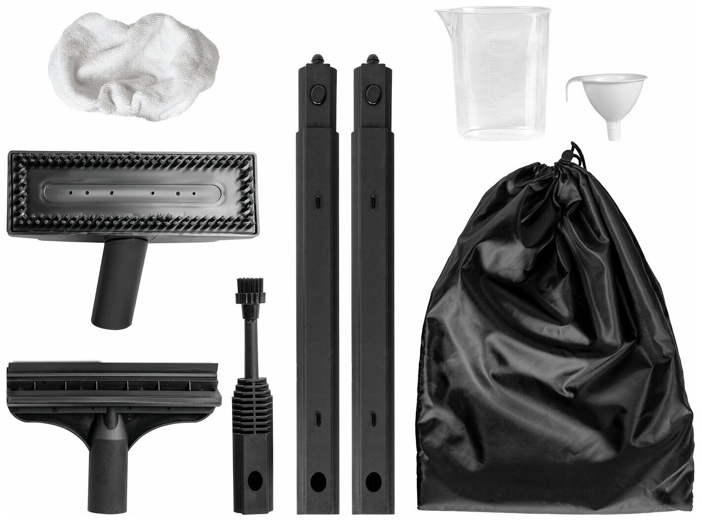 | Дополнительная информация | 4 насадки, тряпка, 2 удлинительные трубки, воронка для наполнения бойлера водой, мешок для хранения аксессуаров, мерный стакан, уплотнительное кольцо |
