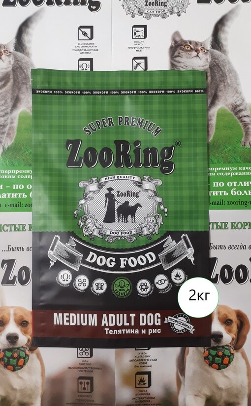 Сухой корм для собак ZooRing телятина, с рисом 2 кг (для средних пород)