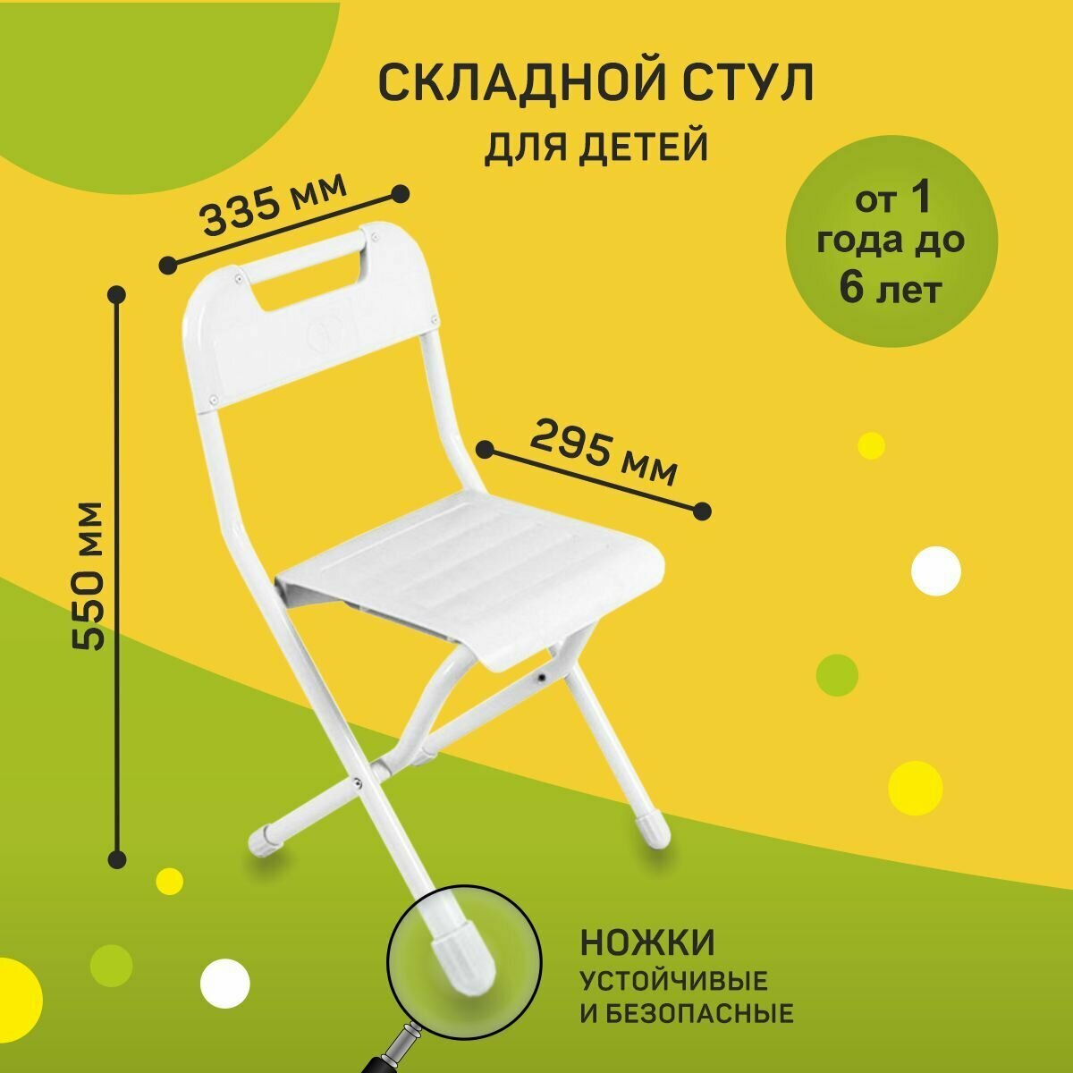 Стул детский раскладной для детей от 1 до 6 лет, белый стульчик складной для дошкольников