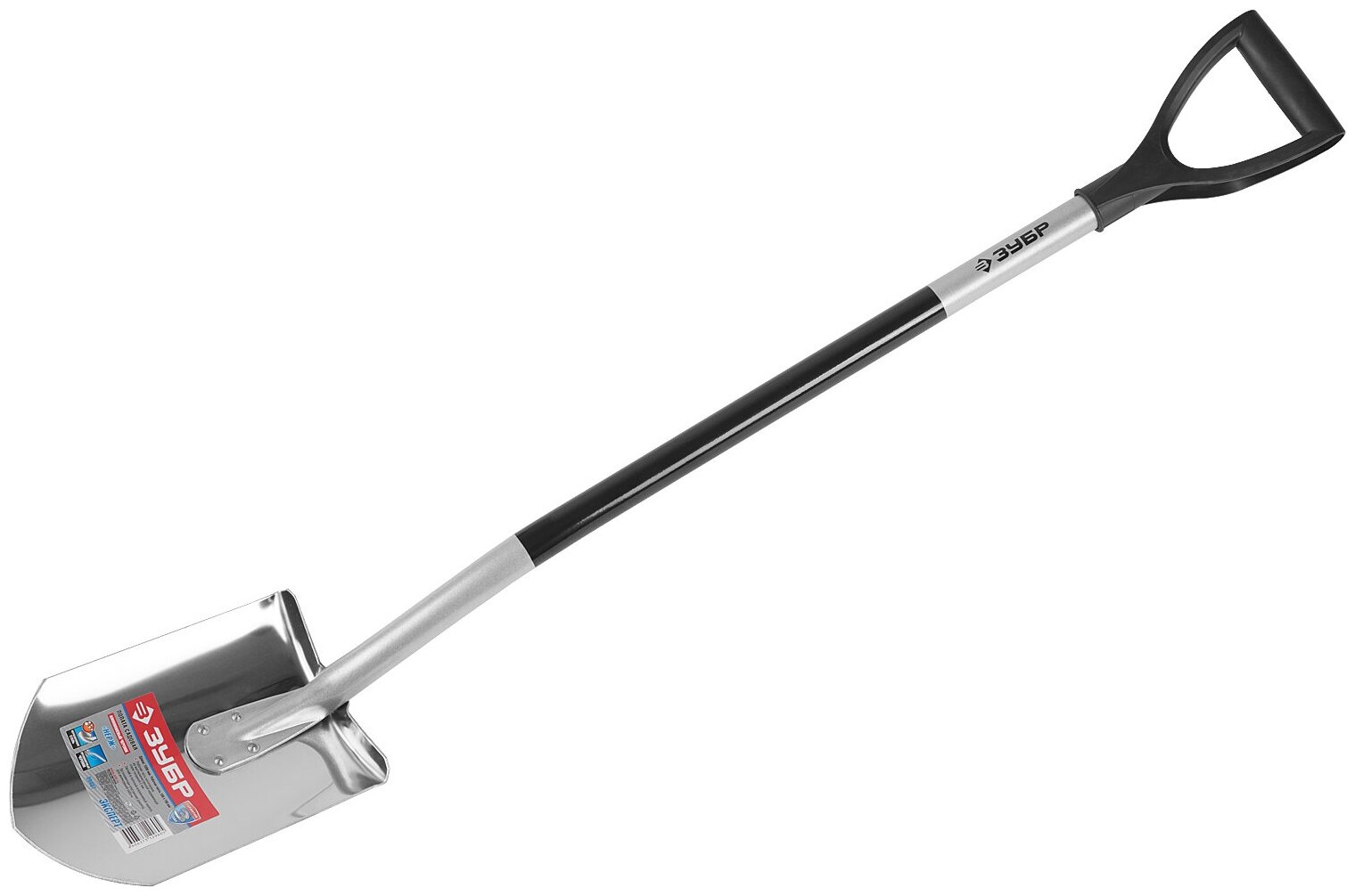 Лопата Артель-НС штыковая из нержавеющей стали, эргономичный алюминиевый черенок, с рукояткой, Зубр Профессионал 39407