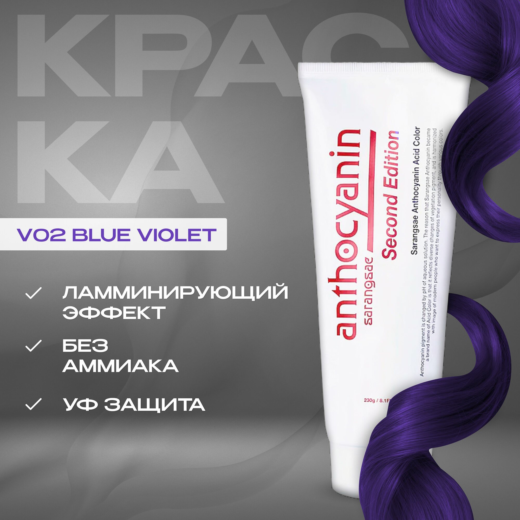 Anthocyanin Пурпурная краска для волос V02 Blue Violet 230 мл ламинирующая без аммиака профессиональная