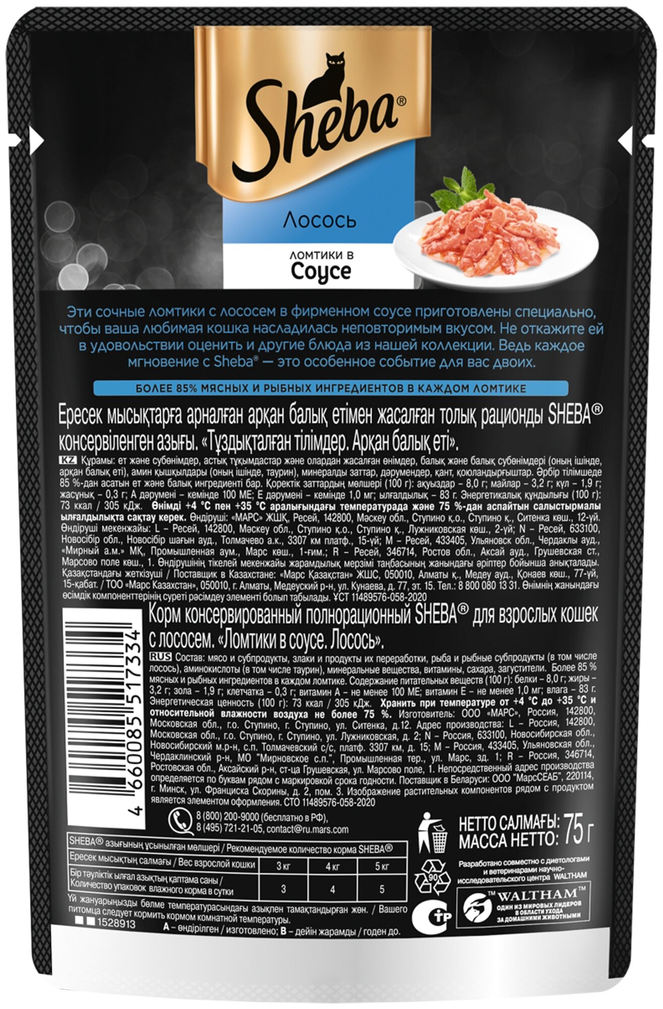 75Г пауч SHEBA лосось ломтики