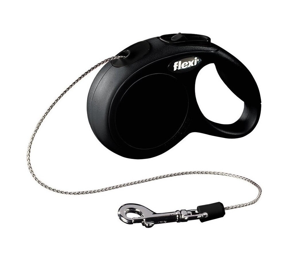 Поводок-рулетка flexi New Classic CAT трос XS 3m 8 kg чёрная
