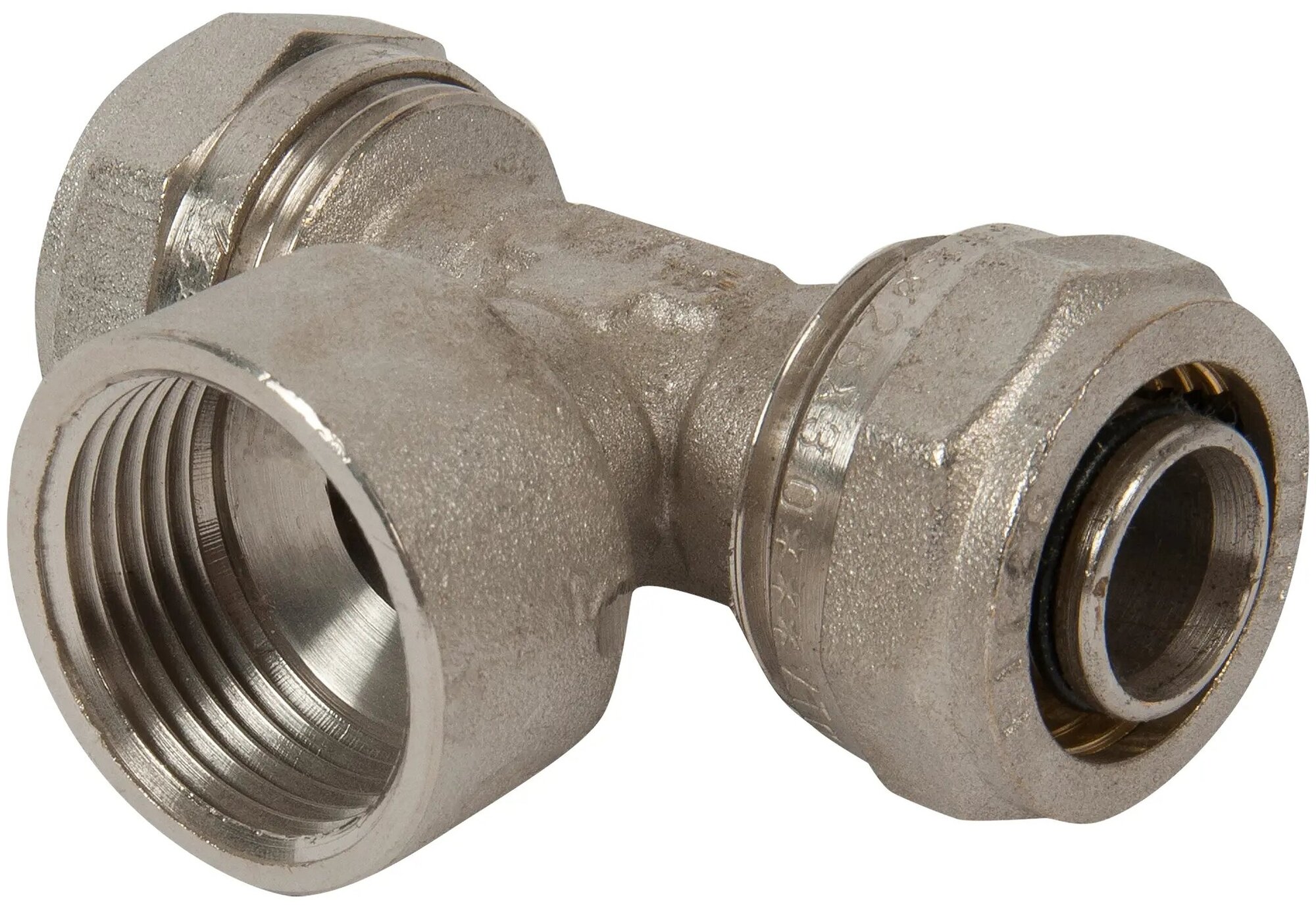 Тройник обжимной Valtec внутренняя резьба 26х1" мм никелированная латунь VTm.332.N.260626